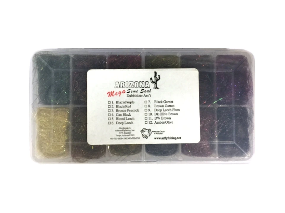 A dubbing collection of some of the more popular Arizona Mega Simi Seal dubbing colors.